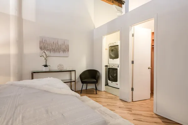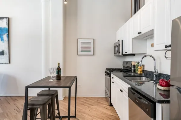 MULTIPLE OFFERS RECEIVED. Best and final offers due 3/29 at 6:30pm. The Clinton Street Lofts! Here we have a lovely opportunity to live in a beautifully updated first-floor residence in this highly sought-after building. You're ideally situated in the heart of the West Loop, steps from Fulton Market. This cozy home blends classic timber loft character with modern updates, offering both style and convenience in one of Chicago's most vibrant neighborhoods. You will be impressed as you walk in to find soaring 15' ceilings, diagonal newly refinished hardwood floors, massive windows, exposed brick, and a bright, open-concept layout filled with natural light. The updated kitchen features brand new 2025 stainless steel appliances, ample cabinetry, and a functional layout that flows seamlessly into the spacious living area-perfect for entertaining or relaxing at home. The first-floor location offers unmatched accessibility and everyday ease, while still enjoying the charm and character the building is known for. Additional highlights include in-unit laundry, a large walk-in closet, fresh paint throughout, generous storage within the unit as well as a separate storage unit, and included parking-a rare and valuable convenience in this prime location. Clinton Street Lofts is a well-managed, amenity-rich building featuring door staff, a fitness center, a bike room and a beautifully maintained courtyard with seating and grilling areas. Step outside and you're immediately immersed in some of the best dining and nightlife Chicago has to offer. Enjoy being just around the corner from favorites like Gibsons Italia, Avec, and Trivoli Tavern, along with countless bars, cafes, and boutique shops throughout Fulton Market and the West Loop. Not to mention Eastbank Club, Randolph Street's Restaurant Row, and grocery stores. Commuting is effortless with immediate access to the CTA Green Line and CTA Pink Line at Clinton, nearby bus routes, and Metra stations just blocks away. You're also minutes from the Loop and the Chicago Riverwalk for scenic walks and outdoor enjoyment. This is an incredible opportunity to own a move-in ready home in one of Chicago's most desirable locations-combining modern updates, included parking, and unbeatable walkability.